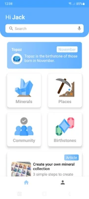 GeoCrystal tjener som en inspirerende og illustrativ guide, designet til at berige din forståelse for mineralriget. Appen er omhyggeligt kurateret til at støtte din interesse og passion for alt, hvad der rører sig under overfladen. Del dine egne fund og observationer med et fællesskab af ligesindede; GeoCrystal giver dig platformen til at uploade billeder, der fungerer som værdifulde bidrag til vores fælles vidensbank, og giver dig mulighed for at forbinde med andre mineral-elskere.