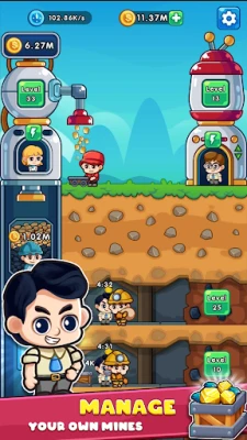 Din succes afhænger af strategisk mikroledelse. Interager med dine medarbejdere – de gulklædte udgraver dyrebare klipper, guld og diamanter, mens de blåklædte sørger for problemfri transport af de fundne mineraler. Til sidst tager de rødklædte sig af at flytte disse skatte sikkert ind på lageret. Hver en smule guld og hver diamant, du indsamler, er en investering i fremtiden. Brug dine indtægter klogt til at udvide minen, opgradere udstyr, accelerere arbejdsgangen og forbedre dine minearbejdere, guldgravere og elevatoroperatører. Ansæt dygtige ledere til at optimere omkostningerne, strømline infrastrukturen og øge produktiviteten, så du kan maksimere din fortjeneste og vokse endnu hurtigere.
