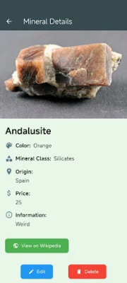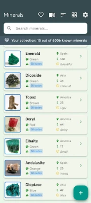 Er du fascineret af mineralernes verden og søger en intelligent måde at katalogisere din personlige samling på? My Mineral List er den ultimative ledsager for enhver mineralogieentusiast, lige fra den dedikerede samler til den nysgerrige studerende. Denne omfattende app omdanner din enhed til et avanceret værktøj, der giver dig mulighed for at organisere, udforske og dykke ned i den utrolige mangfoldighed af Jordens ædelstene og krystaller. Oplev en problemfri måde at holde styr på dine fund, fremtidige erhvervelser, salg eller byttehandler, alt sammen inden for en brugervenlig grænseflade.
