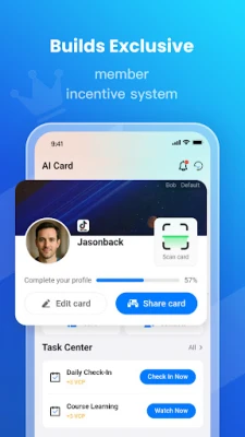 Et strømlinet Personligt Center samler alle dine vigtige ressourcer på ét sted. Administrer og del digitale visitkort nemt, hvilket forenkler netværksarbejde og holder dine professionelle kontakter opdaterede. Systemet inkorporerer også opgaveincitamenter, der motiverer dig til at nå dine mål og forbedrer din produktivitet. Denne applikation er mere end blot en samling værktøjer; den er en holistisk løsning, der understøtter din personlige vækst, professionelle udvikling og succes inden for iværksætteri. Oplev en problemfri og integreret oplevelse, der maksimerer dit potentiale og driver dig fremad.