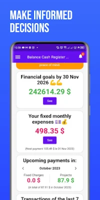 Med VV Finances kan du ubesværet logge enhver indtægt og udgift. Appens intelligente kategoriseringsfunktion giver dig dybdegående forståelse for dine forbrugsmønstre, hvilket er afgørende for informerede beslutninger. Skab personlige budgetter for forskellige områder af dit liv og følg din fremgang i realtid. Du vil modtage diskrete meddelelser, der guider dig til at forblive inden for dine økonomiske rammer. Desuden sikrer VV Finances, at du aldrig går glip af en vigtig regning eller betalingsfrist takket være praktiske, tilpasselige påmindelser.